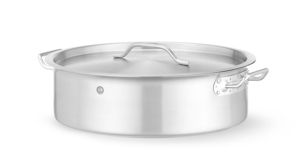 Laag kookpan – met deksel, HENDI, 15,8L, ⌀380x(H)139mm